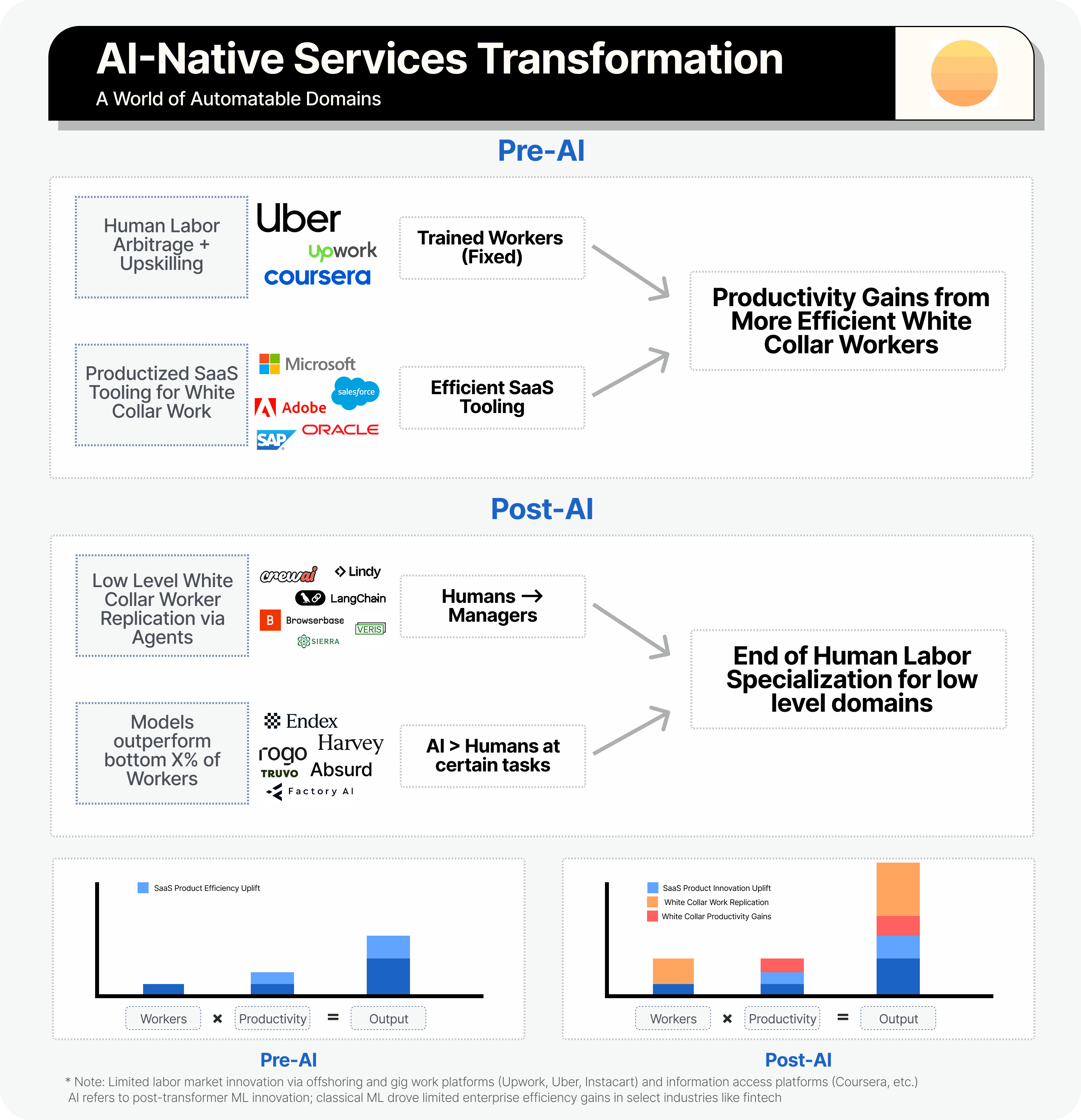 AI-enabled services eventually aim to productize, or make so efficient their processes that even skilled labor on their internal orchestration platforms produce SaaS-like margins.