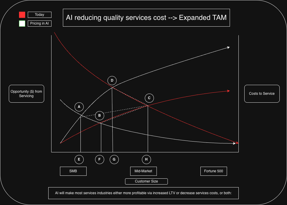 Econ 101 Diagram of how AI & services increases TAM