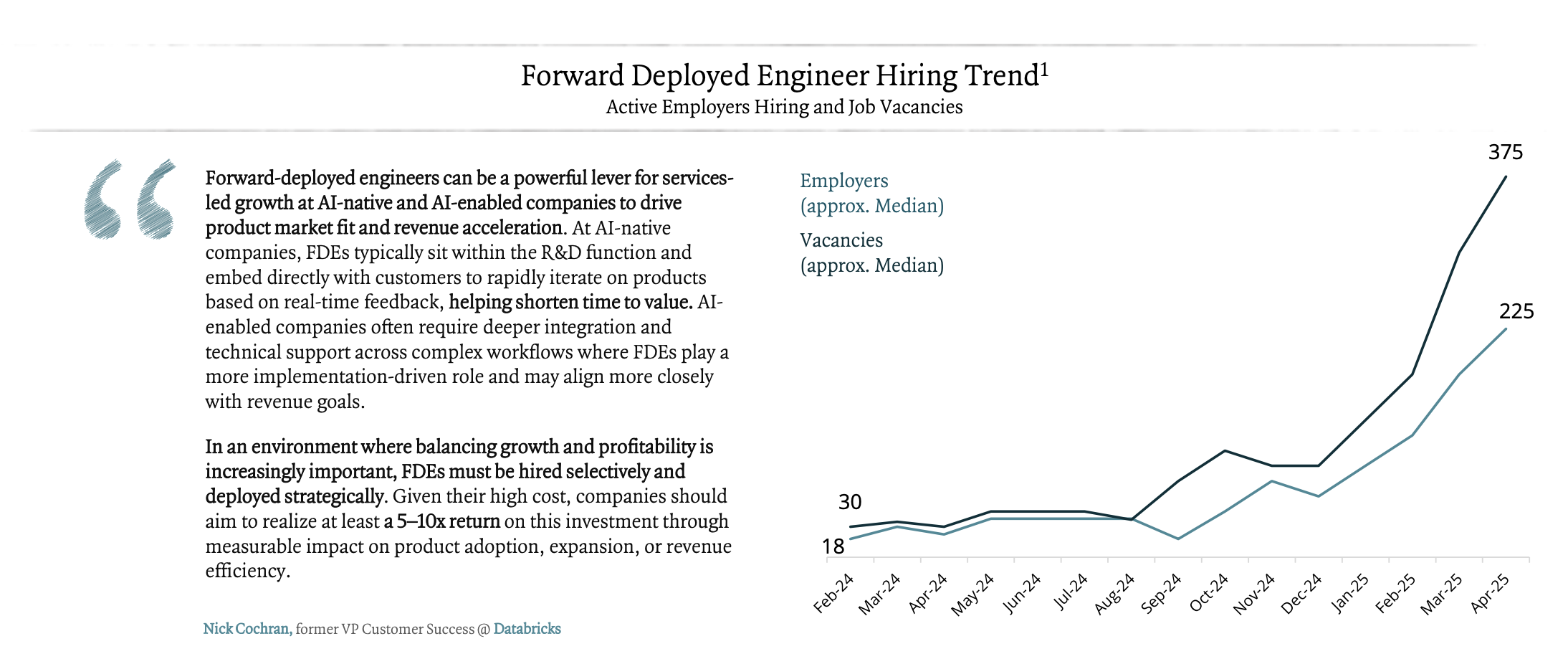 The result is being seen empirically too - roles are looking more full stack than ever (a piece from my blog, examining role titles) and FDEs, at least in name, are desired more than ever: