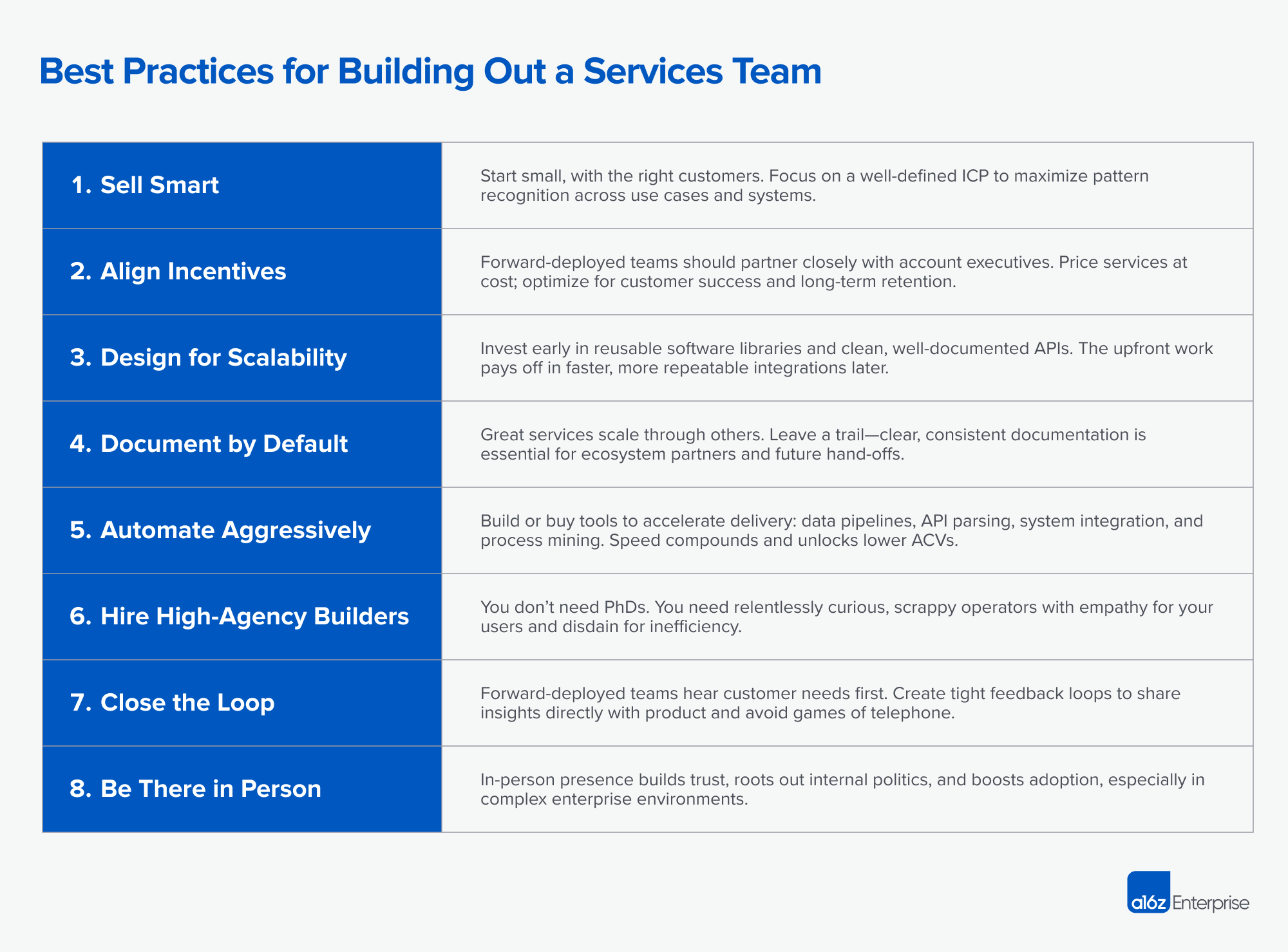 A16z's best practices for building out a services team is still relevant in the world of ai-enabled services
