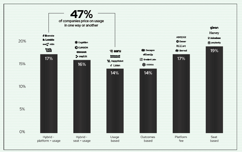 Usage based pricing dominates when the marginal cost of logic shifts from software licensing to inference computing (From Redpoint ai64)