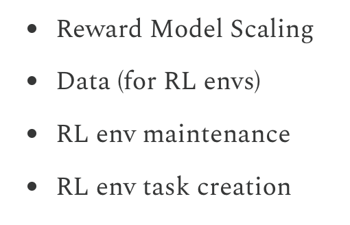 Particularly, as I mentioned in my previous piece, four key infrastructure problems around cutting edge RL, if anybody has built them (with talent dense teams), make them great acquisition targets:
